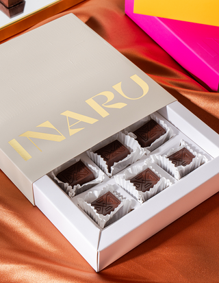 9 piece set, experience pure pleasure with our elegant box of handcrafted praline bonbons.